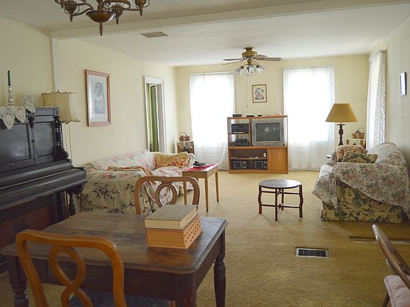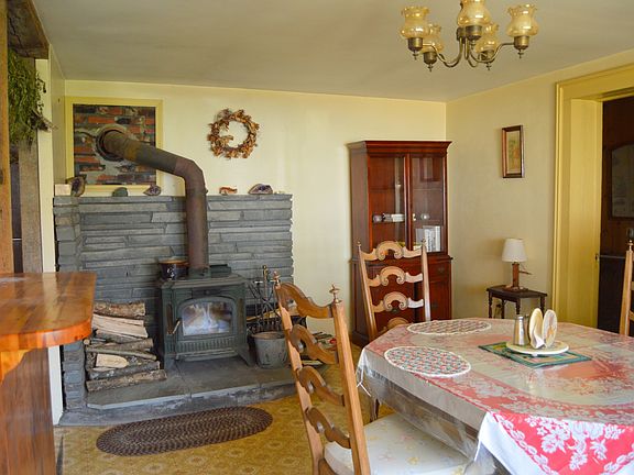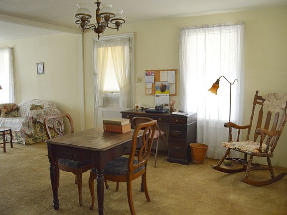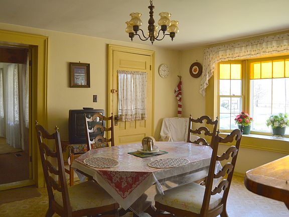 The three bedroom farmhouse has so much potential with its nine acres and wrap-around porch. There is a very open kitchen with cathedral ceilings and a cozy wood stove. There are three bedrooms in this home, with an extra room on the first floor, which could be used as an office. Outside, you will find a pool, a two story two car garage, and a out-building for storage.