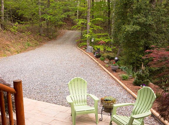 Beautiful log sided home, with exterior and interior log home look. Beautiful wood work through out inside and outside of home. Poplar bark features inside and out. Large bonus room on upper level - den, office, etc. Spacious kitchen with open design, lots of light, flows into dining room and living area. Large open living area also with lots of light, beautiful log fireplace in living room. One bedroom lower level, one bedroom upper level, with deck - great for relaxing in the evening or morning coffee. . Both baths have whirl pool tubs. Kitchen has stainless appliances and granite surfaces. Spacious wrap around covered porch gives you extra living spaces outdoors, and a nice level yard, landscaping around home and drive way. Lots of storage space. Home is centrally located to Bryson City, Cherokee, Sylva.