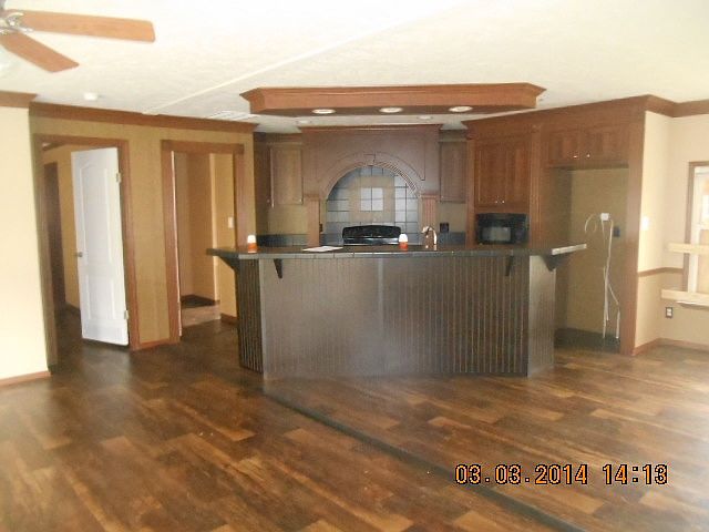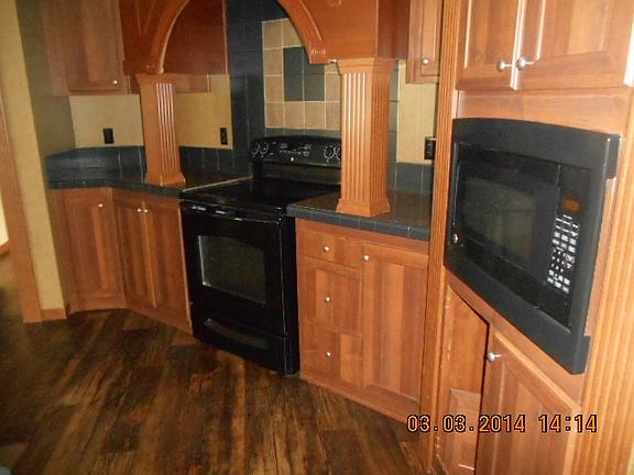 This mobile home has an open floor plan, beautiful kitchen with island, laminate flooring, 3 spacious bedrooms and 2 bathrooms. The master bath has an oversized tub, separate shower and walk in closet!