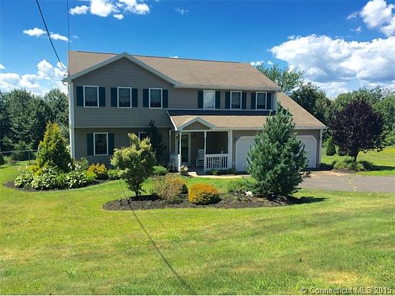 Beautiful 3 bedroom, 2.5 bath contemporary Colonial in peaceful, rural Ellington. Home has large granite counter tops, cathedral ceiling, central air, 3-sided peninsula gas fireplace, new retractable awning, huge recreation room...everything you could think to want in a home. Enter the home on the same level as the family room and garage access; up one full flight of stairs is the main living with kitchen/dining open floor plan and three bedrooms. Enjoy over an acre of land with a fire pit built into the stone patio and a two-tiered deck that provides amazing sunset views. Very private, fenced-in yard. All neutral paint throughout. Hard-wired for both a generator and an outdoor spa. Professional energy assessment was done on the home and nearly all appliances are new and come with warranties.