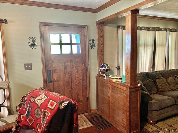 We are happy to announce the arrival of this new listing in the Village of Ilion. This village home is a true traditional style known as the American Foursquare. These two-story homes became popular in the U.S. after the 1900s. The style was made popular with unique features such as stylish wood trim and highly crafted details. 198 John St has all of that and more. The large open front porch is the ideal outdoor sitting area, perfect for greeting guests. The main entrance boasts the original woodwork from the staircase to the half-height wall & posts at the living room entrance. All set on hardwood floors. Double French doors divide the dining from the living area. The dining room has an open service window to the kitchen. The kitchen has natural wood cabinets & comes with appliances. The back hallway offers convenient main-floor laundry. The staircase to the 2nd floor has four traditional corner rooms but with a nice twist. The master bedroom has a double room, providing a cozy living area. Two additional bedrooms, a full bath & walk-up attic complete the 2nd floor. The rear yard is designed for patio living with an inground pool, hot tub & privacy fencing to enjoy it all.