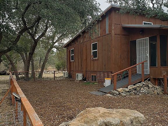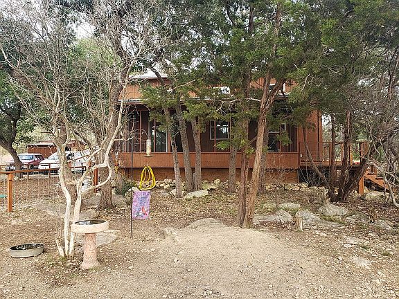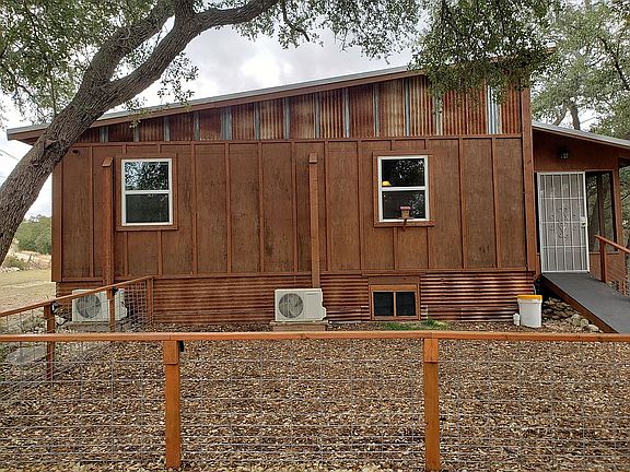 Open floor plan, screened porch, two storage sheds, washer/dryer closet, knotty pine interior. Two bedrooms and one full bath. 1.02 acre. Car port. Zoned heating and cooling. Trough tub. Conveniently located to Canyon Lake. Beautiful home. Must see.