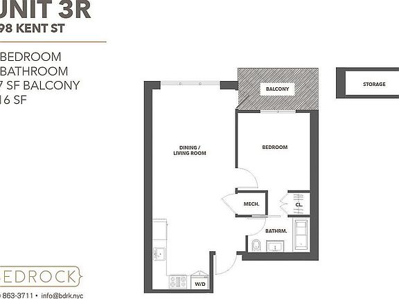 Welcome to 198 Kent Street -- a brand-new, boutique, 5 unit condo located in the heart of Greenpoint. This building is conveniently located one block from the Greenpoint Ave G station, and walking distance to some of New York's highest rated public schools. Walk from your quaint block to nearby parks and the East River Waterfront in just five minutes. Additionally there are several organic markets, three large supermarkets, and pharmacies within a two block radius. What was once a quiet enclave is now in the midst of a transformation into whats sure to be one of the citys most desirable places to live. Greenpoint offers a charming neighborhood vibe with countless restaurants, bars and shopping at less than a 15 minute drive into Manhattan. This stunning new dev condo blends chic finishes with contemporary open and spacious layouts and private outdoor space with almost every unit. Each home is equipped with a suite of stainless steel kitchen appliances, hardwood flooring throughout, custom lighting and a washer/dryers. One, two and three bedroom layouts are available. Unit 3R is a large one bedroom, one bathroom apartment with a large private balcony and south exposure. The bedroom is spacious enough for a king or queen bed. The kitchen opens up into an expansive living room with space for a living and dining area. Broker bring your buyers as we Co-Broke.