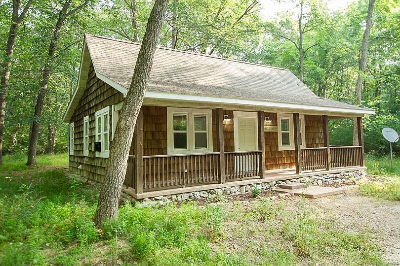Welcome to this charming private cabin, nestled on a picturesque four acres of land. This well-cared-for home features vaulted ceilings and an open floor plan, creating a spacious and inviting atmosphere. With three bedrooms(bedrooms do not have closets), it offers ample space for relaxation. Other features include custom kitchen cabinets, newer bathroom vanity, pedestal sink, beautiful clawfoot tub and ceiling fans throughout. Unwind on the peaceful covered porch, capturing breathtaking views of nature. This idyllic retreat awaits those seeking tranquility.- schedule your visit today!