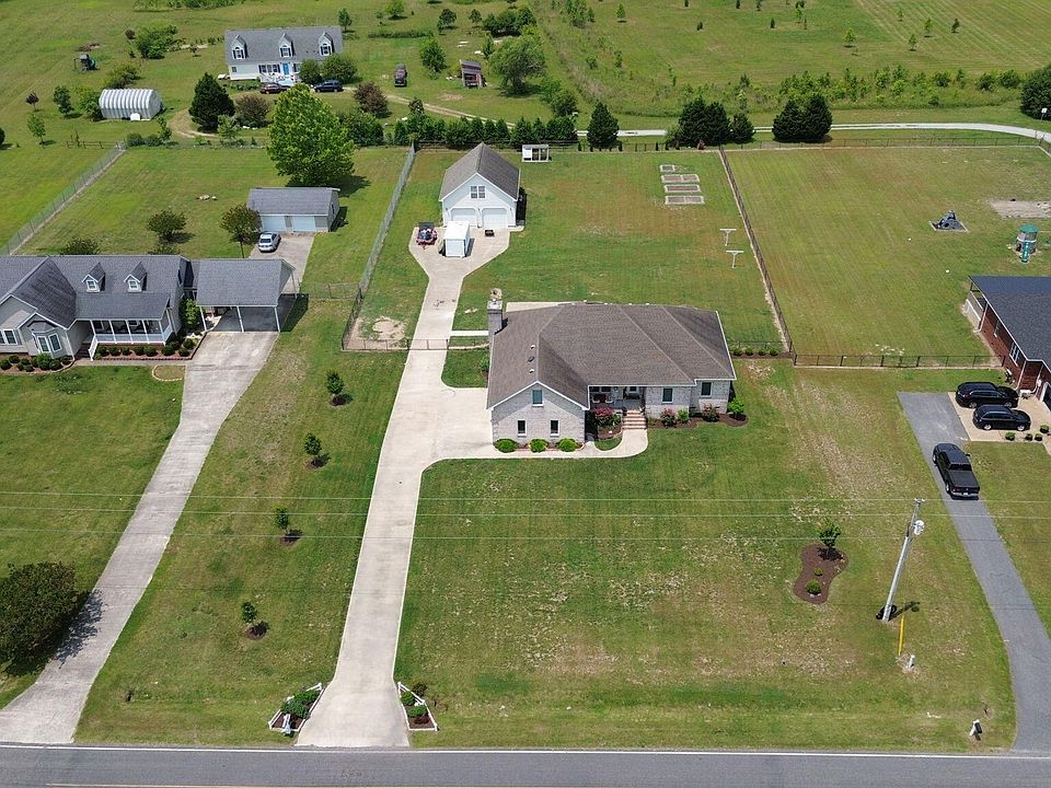 Just over 2 miles from the VA boarder! If you need garage space with a large home in a beautiful country setting- this is the one! 3 car attached and huge 2 car detached (32'X28') with separate panel box and unfinished room on top! Over 2600 sq' of heated square footage. Lots of upgrades including gleaming hardwood floors in a sunken Livingroom- fully equipped with tray ceiling, built-in shelving and fireplace. Chefs kitchen with stainless appliances and wood cabinetry. Large primary bedroom ensuite with jetted tub, tiled floors and large walk-in closet. Plenty of natural light flows through the home. Large FROG and permanent stairs to the walk-in attic! Spacious fenced backyard with extra driveway space. Energy efficient dual zone geothermal pump.