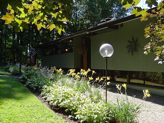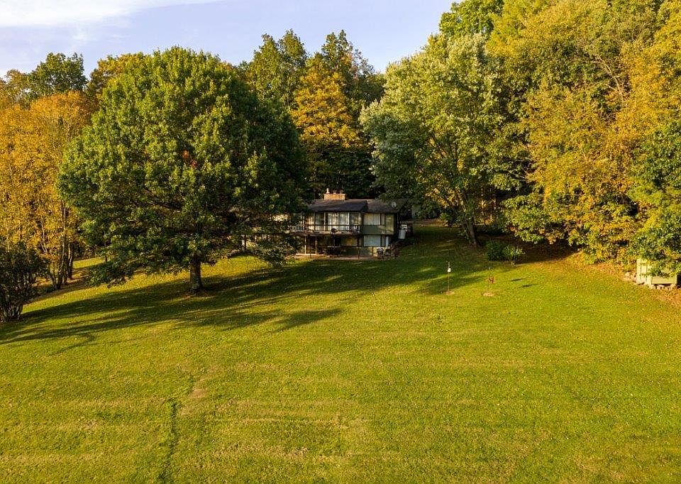 Unique Custom Contemporary situated on over 11 secluded acres. Offering an idyllic country setting, this three or four bedroom, two full bath split level features a bright open layout living space and HUGE Master bedroom on the main floor. Windows fill every wall of the primary floor, highlighted by remodeled kitchen with tile flooring, granite counters, cherry cabinetry, and stainless steel appliances. Kitchen leads to huge living room with hardwood flooring, woodburning fireplace, and three sets of sliders to a huge back deck and awesome views. Living room open to formal dining area and large office or potential fourth bedroom. First floor rounded out by master bedroom with ample closet space and area well suited for office/sitting area/dressing area, and completely remodeled full bath with granite flooring and sink and tile surround shower/tub. Lower level offers a full walkout to ground level, and features a versatile family room area with travertine granite flooring & propane fireplace, as well as two additional bedrooms and full bath with modern glass enclosed walk-in shower. The grounds are awesome, and feature a great mix of open lawn and dense woods as well as fantastic hillside views. Truly a parklike setting, the exterior is rounded out by a detached oversized two car garage and above ground pool. Great house, awesome setting!