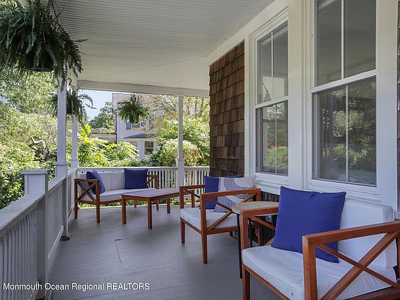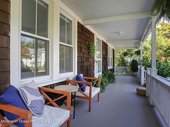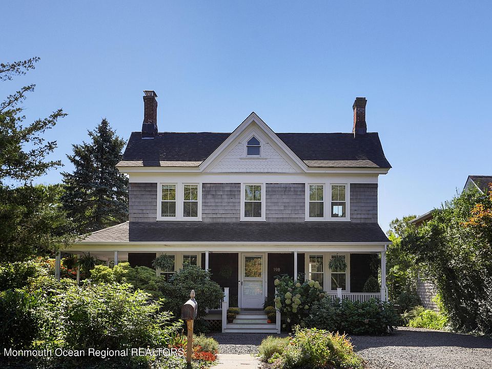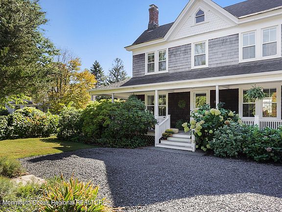 Timeless and elegance describe this classic shingle-style colonial nestled in the coveted Navesink historic district within a mile to the Victorian town of Atlantic Highlands & the NYC Sea streak Ferry. Recent updates include a finished walk-out lower level (2021), classic wrap-around farmhouse front porch (just painted with gorgeous new light fixtures) and surrounded by new lush landscaping (2022), new window shutters, private new backyard patio & fire pit area (2021). Other features - 1st level 9 ft ceilings, original hardwood floors, decorative molding, updated electric panel (2020) new A/C & Escobee smart thermostat. Charming sundrenched kitchen with a farmhouse sink, new SS appliances & conveniently adjacent to a mud room with walkout to yard. Move in ready and a rare find!
