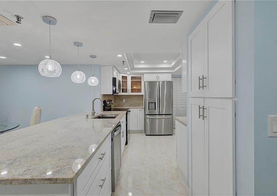 EAST, EAST, EAST! ALL AGES WELCOMED! Spectacular Unit 2/2 with the potential 3rd bedroom. Note: Wall is down, easy to put back up in Boca Teeca! This beautiful condo features a new, completely remodeled kitchen w/ quartz countertops & SS appliances. Enjoy this spacious condo's split floor plan, with tile flooring throughout, and the convenience of the in unit laundry room with a brand new washer and dryer. Enjoy the breathtaking views of the resort style pool with beautiful palm trees from the screened in balcony. The in unit AC was replaced in 2018 and the water heater was replaced in 2013. Great location, just minutes from the beach, Mizner Park, shopping, and great dining. Great budget, elevator in building, don't miss out on this one!! Any Assessments have been paid by seller. Top "A" Rated Schools including Boca Raton Community Middle School & Boca Raton Community High School