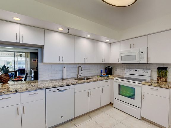 Welcome home to this tropical paradise, PH unit overlooking 5 acres of lush green space. UPDATED to perfection! CORNER UNIT, private location. ALL IMPACT WINDOWS! 2/2 unit w/ den/3rd BR option, 1,441SF. Entertaining is a breeze in your beautiful kitchen w/ granite countertops & subway tile backsplash. Convenient pass thru to dining area. Ceilings have smooth finish. A/C, ELEC PANEL & TANKLESS HWH recently replaced. Tons of natural light! NEW plank flooring in split oversized bedrooms. All interior doors replaced! HUGE master suite! Enjoy morning coffee on your 21 foot-long balcony capturing endless sunrises, & ocean breezes. Your guests will enjoy the updated bath w/ pebble finish frameless shower. New paint. ALL LED dimmable lights. Large LAUNDRY room in unit. Beaches in minutes!