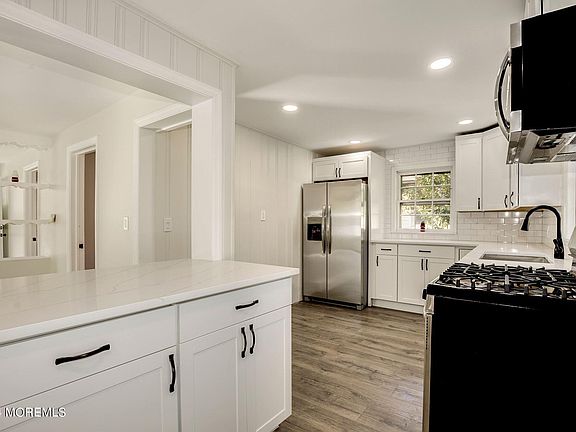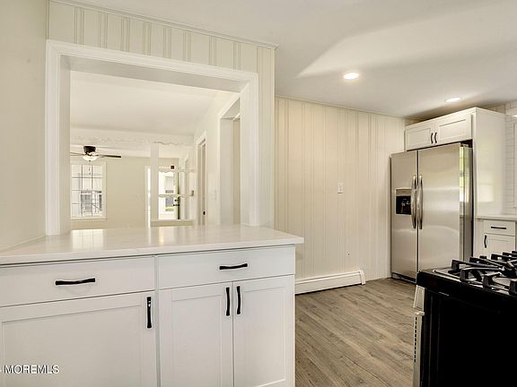 Charming 2-bedroom, 1-bath single family home located minutes from downtown Red Bank, Lincroft, and GSP. The sun-drenched enclosed porch leads to a spacious living room and dining room combo, perfect for entertaining. Enjoy cooking in the newly renovated kitchen with quartz countertops and new appliances. Additional upgrades include newly installed central air conditioning, windows, bathroom, flooring, roof, washer, dryer, and partially finished basement. Large driveway leads to an oversized detached garage with electric that is perfect for extra storage or use as a workshop.
