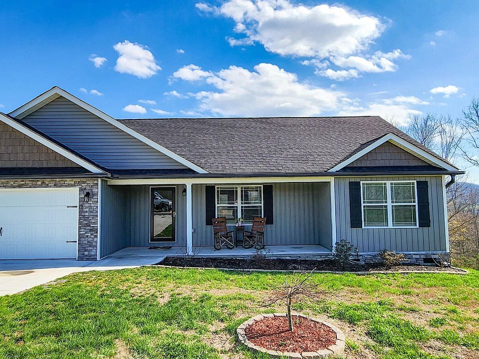 Views, views, views! Beautiful All One Level Living... Built in 2021! Better than new! All appliances convey including Refrigerator and washer & Dryer. Open Kitchen has large island with seating, Quartz countertops, beautiful tiled backsplash, stainless appliances. Sustainable LVP flooring though out. Vaulted Ceiling. Split bedroom floor plan. Large Master with walk-in closet and master bath with walk-in shower, new custom glass shower doors added. Inviting Screened porch for morning coffee while you enjoy the view. Additional decking for grilling and sun. Plus covered front porch. Laundry room, 2 car Garage. Huge stand up crawl space. Gutter guards. Additional lot included to make over 1.5 acres. Nothing to do... just move in!