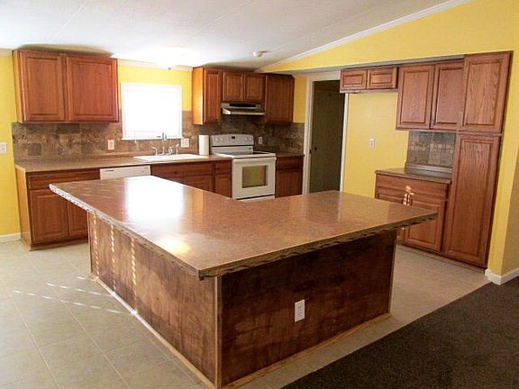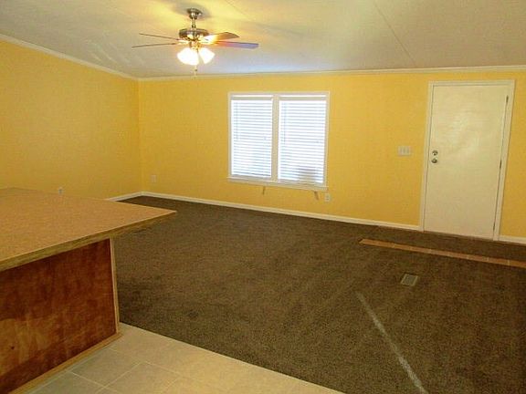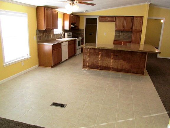 Permanent foundation, vinyl siding and composition shingle roof ...this home looks brand new in the interior. Kitchen has brand new cabinets and breakfast bar, new appliances, ceramic tiled floor and backsplash and has open view to great room and formal dining area. Master suite features ceramic tile shower, jetted tub, granite counter top and walk-in closet. All flooring in home is brand new. Big front porch and back porch overlooks flat fence yard open to the country.