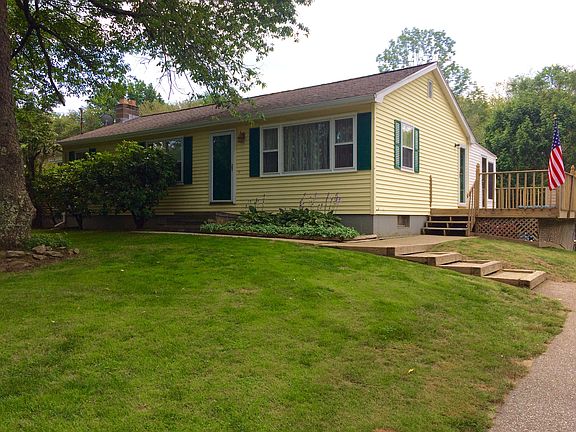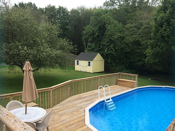 3 bedroom, 2 bath in quiet neighborhood in rural Pomfret. Oversized master BR with private bath and walk-in closet. Kitchen has custom slider walking out to enclosed porch and beautiful deck overlooking pool. Ceiling fans in every room. Finished basement (basement square footage not included in total square footage of home) as well as workshop/workout area. Lots of storage. Invisible fence with over one acre. 16' X 12' shed. Backyard abuts Natchaug State Forest.