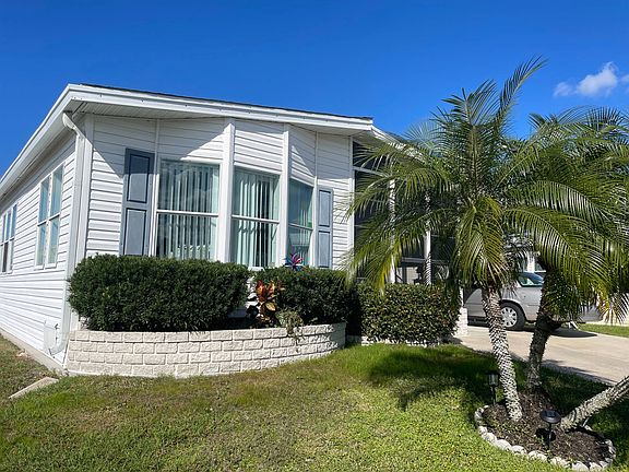 198 Palm Blvd, Parrish FL. 34219 The Gardens 55+ Community This home is on rented/leased lot This 2002 home has 2BR/2BA, 2020 A/C and roof, newer hot water heater, updated plumbing, custom paint and wallpaper, sheetrock walls throughout, textured, vaulted ceilings and carpet and ceramic tile in all the right places. The home comes mostly furnished/turnkey. There is ample room for living, dining and entertaining in over 1,300 SF and home is bigger than it looks from the outside! The galley kitchen has 12" tile with an eat-in breakfast bar is light and bright. There is ample storage and cabinetry and some newer appliances. There is a separate formal dining area with carpet and a custom built in for all your treasures! The living room has sheetrock walls, carpet and vaulted ceilings. It opens to an office/den/3rd BR option at the front of the home. The master bedroom is carpeted with vaulted ceilings, ceiling fan and a walk in closet. The master bathroom has 12" ceramic tile, dual sinks and a walk in shower. The guest bedroom is carpeted with vaulted ceilings, ceiling fan and a closet. The hall bathroom has 12" tile, a single sink vanity and a shower/tub combination. The carport will park two cars tandem style. There is a shed for extra storage. There is a door off the back off the shed that exits onto a concrete patio for catching some sunshine! The lot rent is ~$899 a month and includes lawn mowing, edging and blowing, Internet, TV w/ 200 channels, phone and all the community amenities below: Spa Whirlpool Horseshoes Tennis Court Shuffleboard Court Billiard Room Library Fitness Center The Gardens MHC is located within walking distance of shopping and other services. It's close to I-75 for easy access; and far enough way not to hear it! The Gulf beaches are but 15 minutes west... Florida MH Sales, LLC cannot guarantee or warrant the accuracy of this information, measurements, or condition of any property. Measurements are approximate. All homes are sold "as is" and personal or professional inspection is encouraged. Lot rent is set by the community and is subject to change. All buyers must be approved by the community prior to closing on a negotiated sales contract.