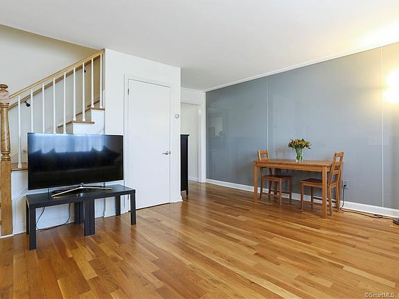 Perfectly located two-bedroom townhouse style condo in the heart of New Canaan can be yours You're within minutes to the train, shops, restaurants, library, tennis courts, baseball fields, playground, and more. This bright and move-in ready condo has hardwood flooring throughout. The kitchen has granite counters, attractive glass back splash and new stainless-steel appliances. The inviting combined living room/ dining area is perfect for relaxing or entertaining. The second level has two generous size bedrooms, plenty of closet space and full bath. Assigned parking just steps away from your back entrance for easy access and convenience. The reasonable taxes and common charges which include heat and hot water make it very affordable. If you're looking for in-town living, and a superior alternative to renting, this is a dream come true