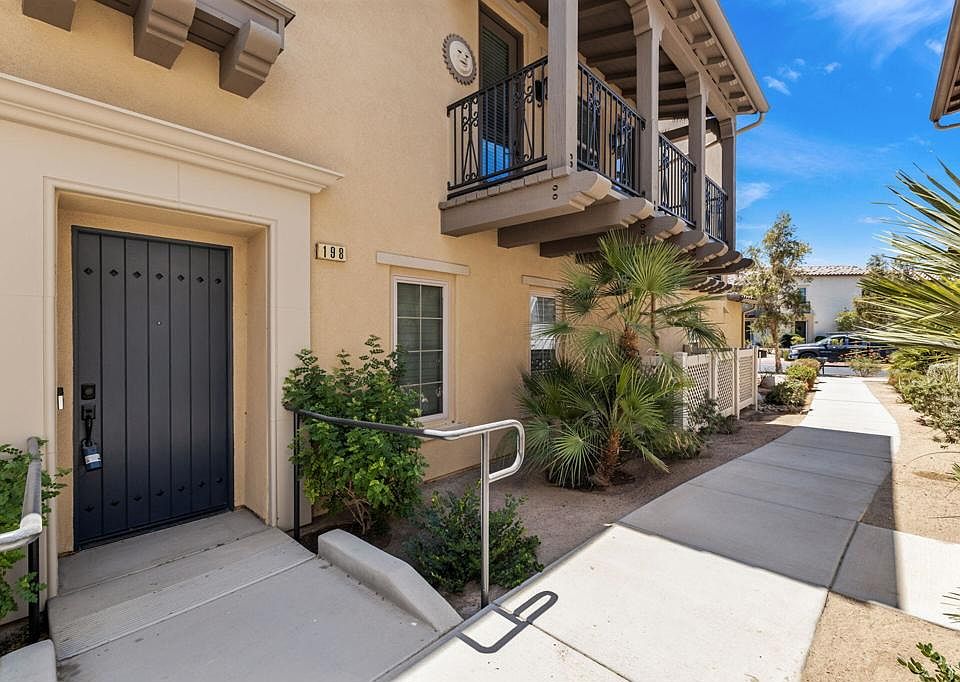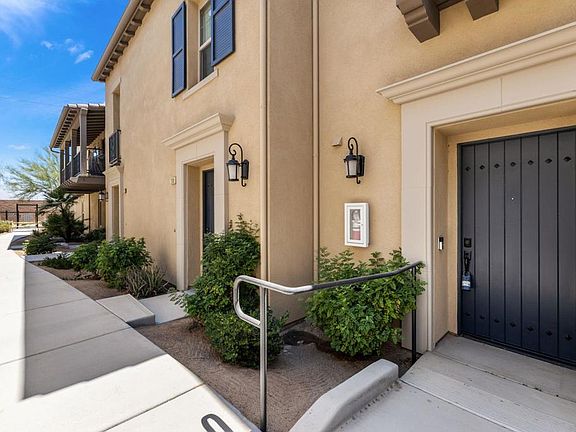 Seller will entertain a Lease Option scenario! Beautiful Spanish style 2 BR/3 BA condo in convenient location of Spanish Walk. Main floor entry with bonus Powder Bath and Storage on main level. Staircase leads to open Living and Dining Area. Nicely appointed Galley style kitchen with granite slab counters , double sink and stainless appliances. French door access to balcony off living/dining area. Primary suite with south facing balcony overlooking park area and mountain views. Convenient desk/work area located between the two bedrooms. Interior laundry on upper level. Upgraded with recessed lighting, stone flooring with carpet in bedrooms, Ceiling fans throughout. Double car garage. Community features include park and playground areas, fitness center, pool and spa.