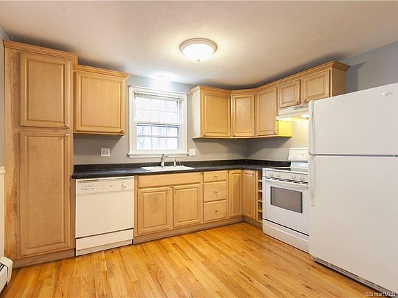 Rarely available 3 bedrooms and 1 bath apartment in desirable area of Farmington. Washer and Dryer hookups available in basement. Total of 1,127 sq. ft. with open floor plan. Off street parking. Updated kitchen and bath, hardwood floors, nice deep backyard and much more! Plenty of storage in basement and shed. This two family is conveniently located within walking distance to Unionville center and all of your favorite local hotspots, schools, shopping and walking/biking trails. 1st floor.