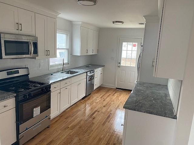 Just renovated entire house. New kitchen cabinets, granite countertop, and appliances. Hardwood floors downstairs, carpet upstairs in bedrooms. Two new full bathrooms, dining room, living room and den. Washer and dryer hookups. Back deck with private yard. Driveway and street parking available. Walking distance to ferry and bus stop. No Pets. No Smoking. Utilities not included. Application and credit check required. 1 1/2 month security deposit. **Do not contact me with unsolicited services or offers** Owner pays for sewer; all other utilities are paid by tenant. 1 Year lease required. Tenant responsible for lawn maintenance and any snow removal.