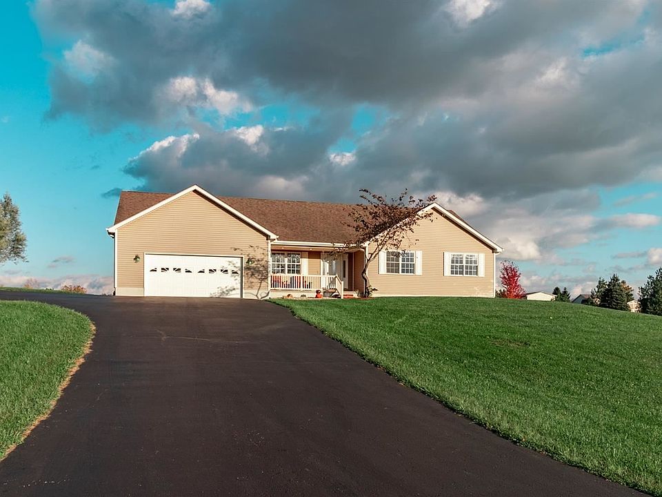 Move in ready custom built ranch. Ranch w/walk out basement offers 3 nice sized BR's. 3.5 BA's, 700 SF of finished area in the LL, open & airy kitchen, nice sized GR, DR & breakfast nook. Covered patio looking at the green space--the front of the home glazes out to the horse farm--what a view. 2.7 acres on a quiet cul de sac lot Home has quality cabinetry, flooring, lighting, etc. Deck was totally rebuilt last year and R 45 cellu/insulation