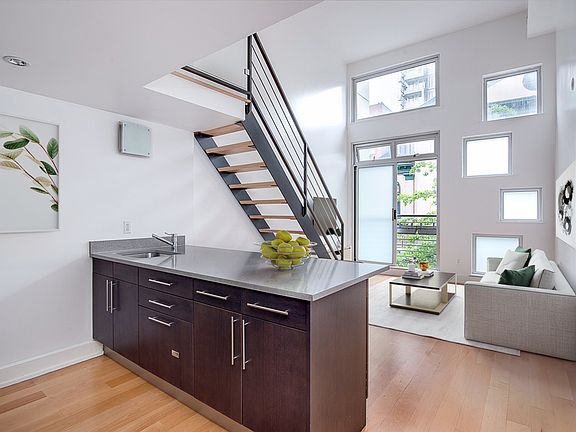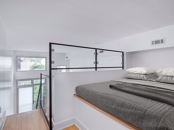 Welcome Home! This beautiful, modern one-bedroom loft has 17 foot ceilings, gorgeous hardwood floors, a chef's kitchen, stainless-steel appliances and a dishwasher. The living area is flooded with light and floor to ceiling windows. The large island makes this kitchen ideal for cooking and is a great place to entertain guests. There is also a perfect little nook in the living area for your work from home desk! The spacious bathroom comes with a deep soaking tub and is fully renovated with modern finishes. As you wander up the stairs you will find a lofted bedroom with the height of a regular room. You can fit a queen sized bed on the custom platform, that provides an additional cozy factor. Just past the bedroom you step into the conveniently, huge walk-in closet, that is also home to a full size in-unit washer and dryer! This apartment is located on a quiet residential street in South Williamsburg, across from a lovely community garden. 198 South 2nd Street is central to all Williamsburg amenities and is a small condominium, elevator building that is equipped with central AC and heat, a very convenient gym and lovely fully finished rooftop. This building has extremely low common charges of $301 a month and a tax abatement until 2034. Be surrounded by the best restaurants, shops, movie theaters, nightlife and transportation!