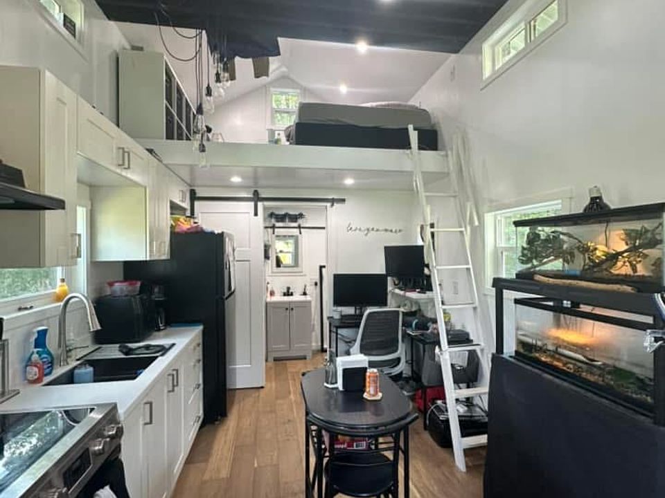 Newly built Tiny home, 200 square ft. main level, 100 square ft loft bedroom. 2 miles east of Stanton. 102 acre rustic/farm. Rental apartment. Great view overlooking ponds, fields and mature pines. Owners pay for heat, electric and water. Renters pay for Internet if needed.