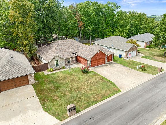 Welcome to 198 Shadowview Drive! This Cozy 4 Bedroom, 3 Bath home has almost 2400 sq ft, as well as a flat lot and room to entertain. This walk in, one level home has great curb appeal, quality you will feel when you walk in, a great floorplan and a wooded backyard with privacy fence. You will enjoy the Kitchen with an eat in area that flows into your new enclosed sunroom. Continue throught your Dining Room to the Living Room you will appreciate the flow of the floorplan. Walking through the house you will notice the upgrades, like wood floors, Crown Molding, New Windows, Newer Roof, New Downspouts and Gutters, New Window Treatments and Tiled Garage Floor and more. Outside you will enjoy a large patio perfect for entertaining, a large shed allowing room for a shop or storage, as well as a mowing shed and a green house. 3rd car garage has been converted into the 4th bedroom or an amazing craft, sewing room or home office. Located in the very popular Horizon Hills/Meadow Ridge subdivision on the North side of Branson, you will appreciate the Low HOA dues that cover the maintenance of the Playground, Book Sharing Box, as well as your Water and Sewer. The convenience of being close to the Branson School, Branson Hills shopping area, Walmart, and other area attractions makes this location a must. This home will cover all your needs and make your perfect Home!
