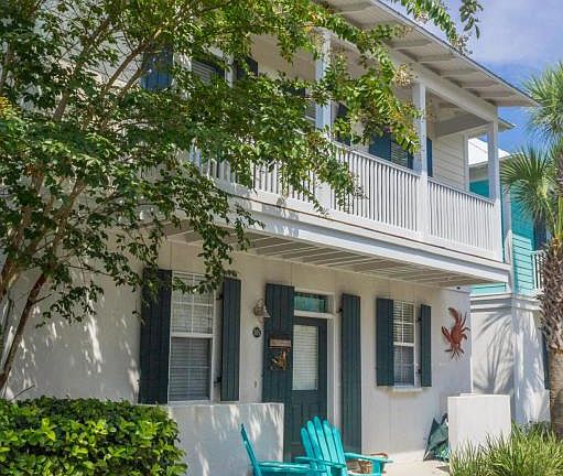 This charming Florida beach cottage is located in the Bungalows of Seagrove. Open floor plan and abundant natural light give an airy, fresh feel. Kitchen, dining, living area, half bath, and laundry are downstairs. 2 bedrooms upstairs with private baths and each exit to balconies. Quaint coastal decor leave you feeling like you're away from it all. Community amenities include 2 pools, hot tub, beautifully landscaped grounds with adjoining lake. Restaurants, shopping and bike rentals abound along popular 30A. Beach access is directly across from Somerset Bridge Road. The perfect little paradise for a vacation or second home!