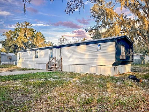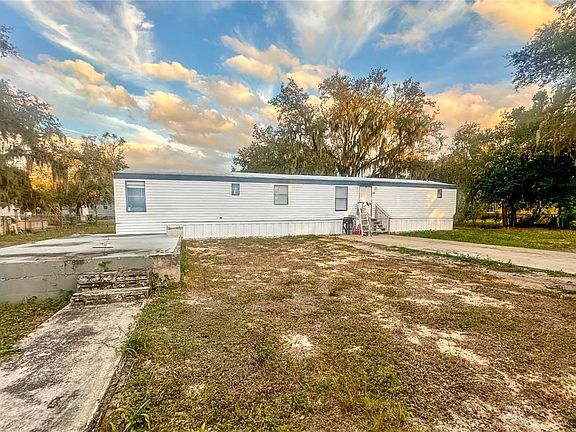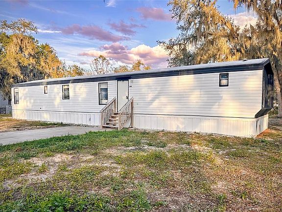Welcome to peaceful country living at 198 Spurlock Rd in Frostproof, FL. This 3-bedroom double-wide sits on one of the largest lots on the street, offering .39 acres of land while still being just a quarter mile from US-98, minutes from Lake Clinch and Reedy Lake, and less than 1.5 hours from Disney and other major theme park attractions. Inside, the open-concept layout allows the living room, kitchen, and dinette to flow seamlessly together, creating a flexible space ready for updates and personal touches; the living room floor is currently plywood, perfect for customizing with your choice of finish, while both bathrooms already feature finished tile flooring. The primary bedroom and one additional bedroom have linoleum flooring, and the third bedroom has laminate. The primary bedroom is generously sized with its own en suite bathroom and built in closet, and the additional bedrooms also have comfortable layouts with closets in each. The home includes 1.5 baths, with the primary bath fully finished and the second bath partially complete—featuring an installed sink and toilet and a shower area ready for finishing. Outside, the property truly shines with a huge front and backyard shaded by beautiful mature oaks. A back door in the trailer leads to the mostly fenced backyard. In the front, there is off-street parking with a paved driveway, as well as a concrete slab that could serve as a future patio, workshop pad, shed foundation, or outdoor entertaining space. With its wide-open land, quiet setting, and strong investment potential, this property offers the perfect blend of rural charm and accessibility.