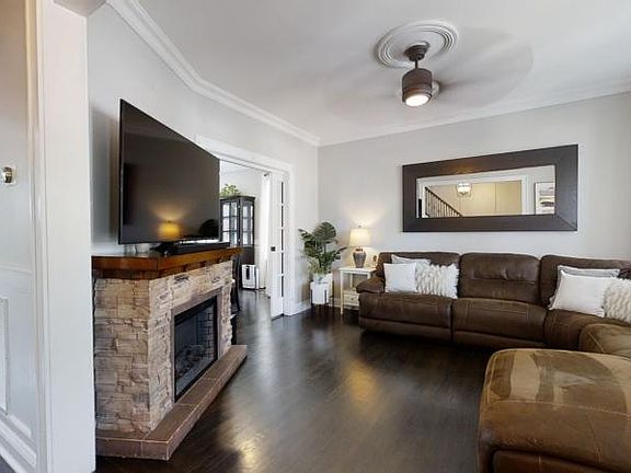 Beautifully RENOVATED side hall colonial, on a corner lot, w/ amazing curb appeal! 1st flr has an open floor plan w/ hardwd flrs throughout, custom kitchen w/Fabuwood cabinets,Lg island, Quartz counters, Bertazzoni stove, garbage disposal, Stainless Steal appliances & more! Dining Rm features wainscoting & crown molding, pocket doors to the Living Rm. 2nd flr has 3 bedrms, 1 full bath, & great closet space! 3rd flr consists of the 4th bedrm or Office, custom walk-in closet, & extra storage closets. Finished basement w/ laundry rm, custom bar w/ quartz counter tops, family rm, full bath w/ a walk-in shower, & additional closets for storage. Private Backyard is beautifully landscaped,w/paved patio great for entertaining! All New Timberline roof, Cedar Impressions siding, & Azek exterior trim & molding -- ALL installed September 2020! This home also offers a front, wraparound porch w/ Trex decking, 2zone HVAC