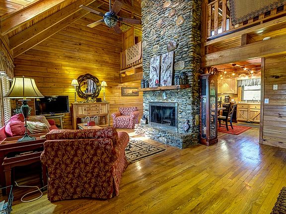 So much to love in this true LOG home on over 5 acres with triple garage plus 2 apartments! Plenty of space for a family or rental opportunity for additional income. Long range views could be all year with some tree trimming. You have a stunning DOUBLE-SIDED wood burning fireplace for ambiance and plenty of warmth in your Great Room and dining/kitchen area. Wood walls, ceilings and exposed joists complete the rustic log beauty. Two guest bedrooms, full bath and laundry are on the main floor. Upstairs you will find your spacious Master Bedroom and bath with clawfoot tub. Rec room is located above the garage for fun and entertaining - plus it has a sunroom. Visit and fall in love today!