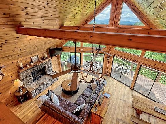 This property is a corporate rental. Please note that the monthly rental price for this property is dynamic and subject to seasonal adjustments. For an accurate quote, provide us with your intended move-in and move-out dates. Save to your wishlist, click the Stunning Blue Ridge mountain views Views from hot tub and main floor balcony Sleeps 6 comfortably 10 min to heart of downtown Blue Ridge Pool table, shuffleboard table, checkers 2 indoor and 1 outdoor fireplace BBQ grill Drip and Keurig coffee maker Washer + Dryer Screened in patio with lounge couch situated fireside. 5 LG streaming TVs. Login to Netlfix, Hulu, etc 3 days of supplies (TP, trash bags, pods, etc). Contact us to schedule a showing.