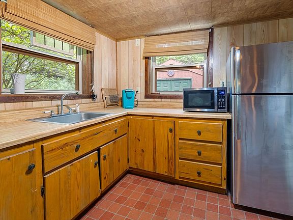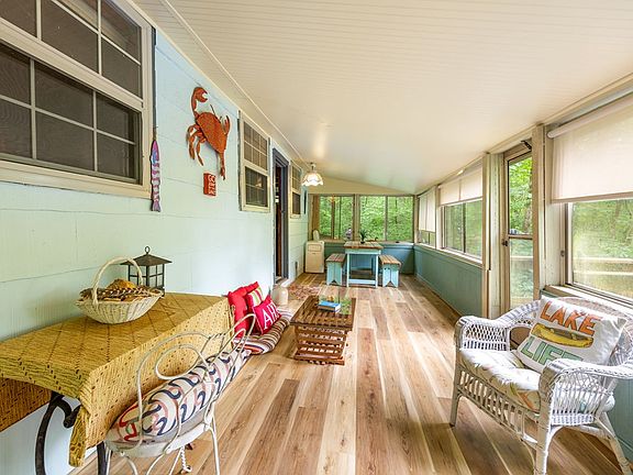 1+ ACRE LAKEFRONT Living at it's best with an affordable price - resident or vacation property. Enjoy your own dock on private 200 acre lake with community beach areas, boat ramp, clubhouse and more. Property includes 2 lots for total of 1.16 waterfront acres. This Cozy Cottage is low maintenance with newer (2017) Metal Roof, Vinyl Siding, Vinyl Replacement Windows, Gutters, Downspouts & Leaf Guards. Relax on the back porch converted to Awesome Morning Room with view of Trices Lake, new LVP Flooring & portable AC Unit. You will find the Washer & Dryer in detached 11'x8' building. All appliances convey - Stove, Microwave, Newer Stainless Refrigerator, Washer, Dryer, AC Units & Electric Fire Place. 10'x8' Detached Shed provides storage in addition to the Walk-In Crawl Space. 11'x10' Dog Kennel with a concrete pad & metal roof. All personal property and furnishings currently on the property convey - includes lawn mower also. Perfect to move in, vacation in or short term rental. Property Conveys AS-IS as well as all Appliances & Personal Property. Look at the pictures and get excited- Rare waterfront property at an affordable price.