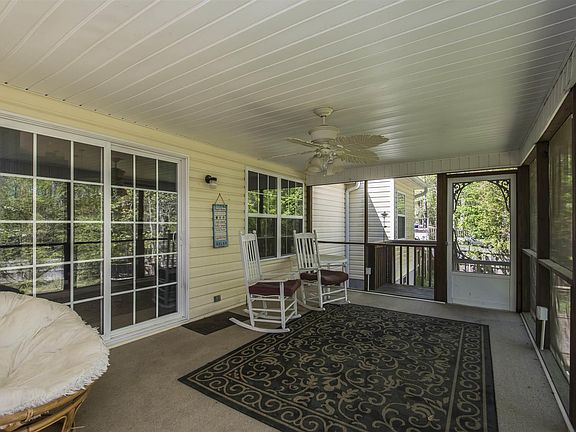 Bright and open floorpan on one level. Living space extends beyond the great room to the 12 x 30 screened in porch overlooking fenced backyard with lower deck and creek with wooden bridge. Open kitchen and formal dining. 15 X11 Master bedroom has walk in closet, private bath with garden tub and separate shower. 3 Bedrooms 2 bathrooms plus a finished room above garage. A real bonus is the workshop below with built in cabinets. Minutes to Lake Murray access. Community pool, pond, walking trails, and playground.