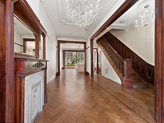 Built in 1875, gut renovated in 2017 and further updated in 2019, 198 Washington Avenue is an elegant 5-story, Clinton Hill classic brownstone with modern updates designed for today's needs and comforts. It sits on a charming tree-lined block known for extra wide sidewalks and deep front gardens. This quintessential Brooklyn townhouse is configured as a triplex over a garden apartment plus finished basement and features a total of four bedrooms, three full baths, and two half baths. Great care was taken to design a home that flows beautifully and functions seamlessly, with high end finishes and systems throughout, including a new Mitsubishi mini-split HVAC system that provides an energy-efficient zone for every main room of the house. Coming home to 198 Washington Avenue, you'll ascend a tall stoop that sits high off the street and enter through elegantly curved double doors. The parlor floor is light, open, and airy with exquisite herringbone floors, nearly 11-foot tall ceilings bordered by crown moldings, and an easeful procession of spaces perfect for entertaining and everyday life. A sitting area framed by an oversized window provides a sunny oasis to relax and unwind. Moving deeper into the house, there's ample space for a dining area and living room, with a tastefully appointed powder room tucked under the stairs. The chef's kitchen is sleek and grand, with enormous Caesarstone countertops and easy circulation for comfortable cooking and socializing. Everything here is top of the line, including a Viking 6-burner stove and oven, Viking dishwasher, Subzero refrigerator, and an undercounter wine cooler. A stunning Nana Door wall system composed of floor-to-ceiling sliding glass panels opens the back wall up to a spacious deck for grilling and dining that feels like an extra room of the house. Downstairs from the deck is a sun-drenched and serenely quiet private backyard with a commercial-grade SynLawn synthetic grass surface that will stay soft and clean for years of barefoot enjoyment, as well as a gas fireplace, bluestone pavers and teak planter boxes for your own vegetable garden. Extraordinary ceiling heights continue upstairs to the three large bedrooms and home office featuring oversized windows, exposed brick, expertly crafted woodwork and abundant closet space. A laundry room conveniently houses a stacked washer/dryer. The top floor is dedicated to a breathtaking primary bedroom suite. The bedroom has a gas fireplace and large windows that look out over the open skies of Clinton Hill. This floor also includes a new home office ideal for working from home (currently used as a baby nursery) and two huge walk-in closets. The master bathroom is a world unto itself, with an oversized walk-in rain shower, Bain Ultra Air Jet soaking tub, double sinks, and large windows with views of the lush greenery just beyond your property. On the roof you'll find brand new steel and wood framing for an expansive deck that you can customize and complete. The garden floor apartment is a fully renovated 1-bedroom, 1.5 bath duplex and is perfect for extended stay visitors or can be legally rented out for additional income. The fully finished basement provides generous space for entertaining and is now used as a recreation room complete with pool table, while also housing an extra-deep storage room and a second washer/dryer. The best of Clinton Hill's and Fort Greene's restaurants, boutiques, and other amenities are all a stone's throw away, as well as Fort Greene Park with its weekly farmer's market, the Brooklyn Navy Yard with the new Wegman's grocery store, Pratt University and BAM. Public transportation is easily accessible, with main bus lines and the G and C trains practically around the corner. Come see this beautifully renovated, turnkey brownstone before it's gone. You'll want to move right in and make it the backdrop for your life in Brooklyn.