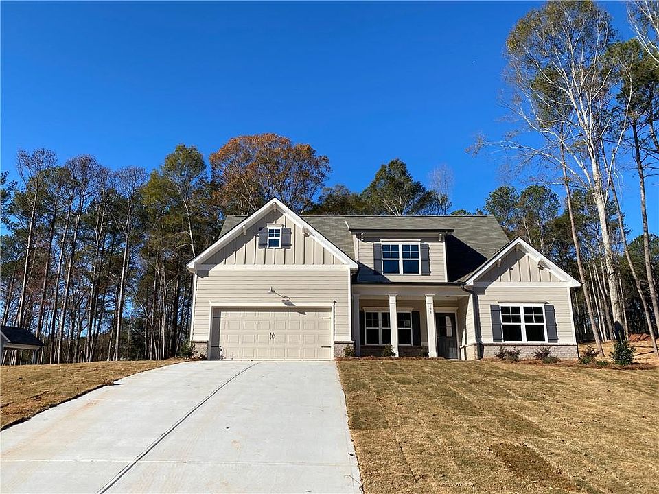 The Georgia Plan is an open concept plan that features a kitchen with a view into the family room. Kitchen has granite countertops and white cabinets with Stainless steel microwave, dishwasher, and range. Vinyl floors in the foyer, hall, family, kitchen, laundry and baths. Carpet in all the bedrooms. Home has two bedrooms and two baths downstairs and has two bedroom and bath upstairs. Huge finished bonus room upstairs. Large Laundry room. This home features a nice size covered back patio. Westminster is one the best subdivision for those that like trees. Only 47 lots in the neighborhood with quick access to Highway 316.