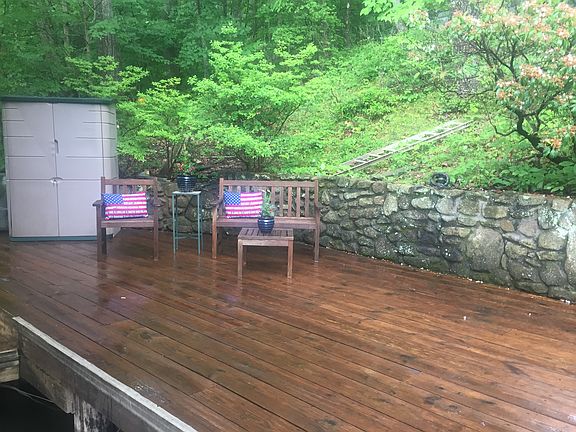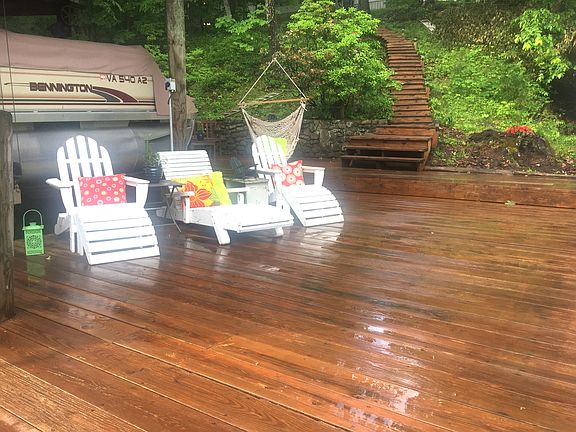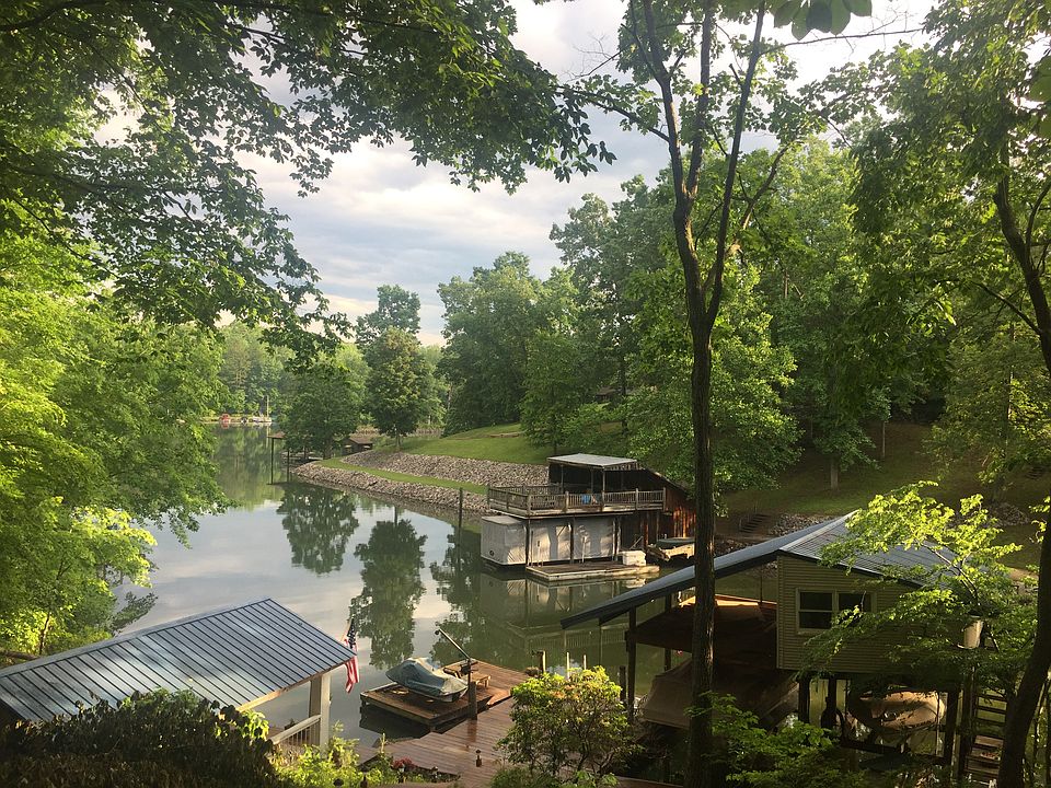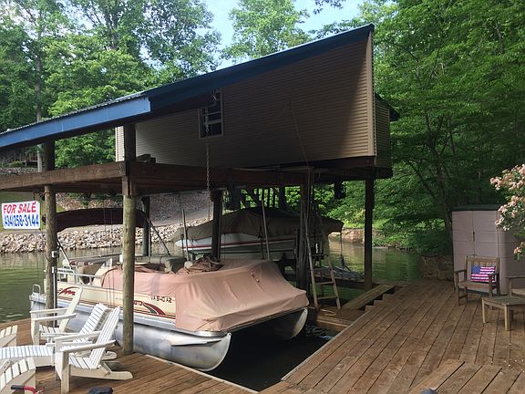 Boat Lifts + Spacious Decks + Lakeside Bar + Great Location! Built before shoreline restrictions, this 1 acre property boasts great entertaining spaces-boathouse with 2 lifts,dock & deck with gorgeous rock wall.Treetop retreat close to it all.Just put your boat in (or buy ours!) and enjoy.Functional 1986 2BR/2BA mobile home(NS)has screened porch & cove views. Or upgrade with a modular/custom home.