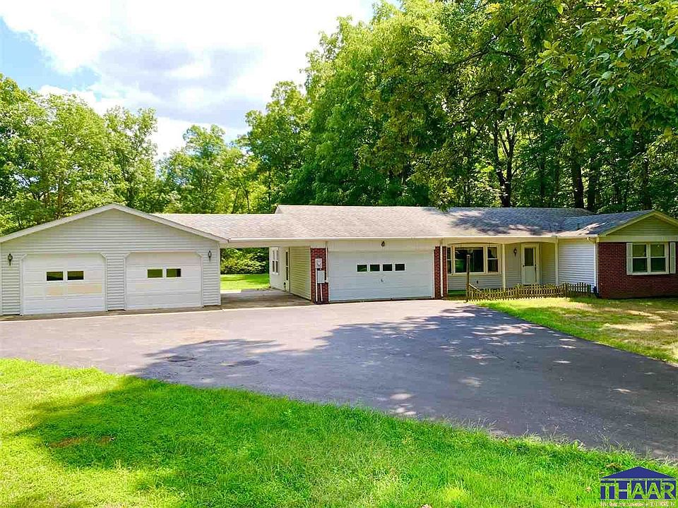 Lake front property for sale in West Terre Haute! This 4 bedroom 1.5 bath move in ready home sits on 2.81 acres with a fishing dock on Windemere Lake. Upon entry of this well maintained ranch style home you will take one step down into the living room with fireplace which gives way to the dining area and Eat-In-Kitchen. The home also boasts of a newer roof, newer HVAC system and newer double pane vinyl clad windows. A covered breezeway and rear patio are nice features as well. A large front and backyard, paved driveway and 4 car garage completes this lovely home. Don't wait, schedule your showing today!