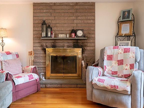 This charming well maintained 3 bed 1 bath ranch sits on a nice size corner lot, tucked away in a quiet neighborhood off Conimicut Village. The home features original refinished hardwood flooring throughout, newer replacement windows, and an eat in kitchen that opens up to a cozy den with a stone fireplace. In the spacious full basement you'll find a newer hot water tank, gas furnace, with the washer/ dryer, and sump pump, plus the plumbing throughout is all less than a year old. The layout and tall ceiling height make it ideal for a finished basement for additional living space. The convenient location and affordable price make this the perfect property for first time home buyers or those looking for a low maintenance downsize. Subject to seller finding suitable housing.