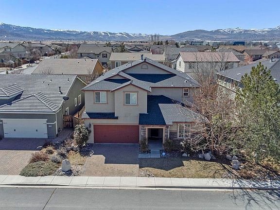 Indulge in the epitome of luxury living with this stunning Model Home located in the desirable Heritage Community at Cyan in South Reno. Boasting five bedrooms, three and a half baths, and dual master bedrooms. This residence offers unparalleled comfort and convenience. As you step inside, you're greeted by a bright and spacious floor plan, perfect for entertaining. The expansive living space features a cozy fireplace, complemented by separate formal living and dining areas., The heart of the home, the gourmet kitchen, is a chef's dream with upgraded granite countertops, ample storage, and top-of-the-line appliances including a built-in microwave, stove/oven, dishwasher, and refrigerator. The large pantry only adds to the functionality. Retreat to the grand master suite with its separate Jack and Jill sinks, colossal master bathroom, and walk-in closet. Pamper yourself in the custom-tiled shower or unwind in the separate soaking tub. Upstairs, a vast loft offers versatile space for a den, office, or entertainment area, complete with additional storage. Custom tile flooring and upgraded carpeting exude elegance throughout the home. Additional amenities include washer and dryer hookups located in the laundry room, along with energy-efficient features and a home security system for peace of mind. This home truly has it all and won't last long on the market. Don't miss your chance to experience luxury living at its finest. Schedule a showing today