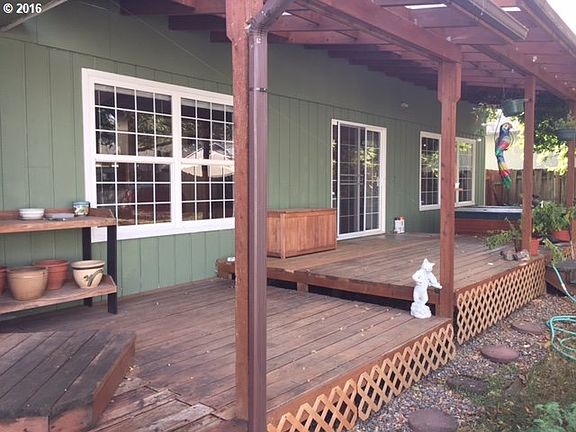 Great architecture in this updated Frank Lloyd Wright designed home. Show this to your artistic clients, hard wood floors, great use of color through out. Large living room with built ins and fireplace. 16X20 out building perfect for a studio! Enjoy roof top patio with great views, covered back deck w/hot tub. Separate utility room, 3 car garage with pull through doors for access to the back yard. Home has newer 40 year roof.