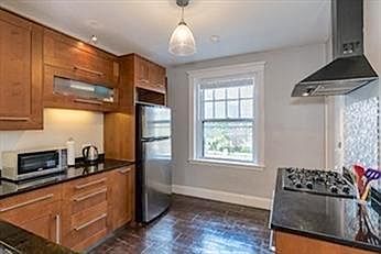 Stunning modern condo in brownstone building! Gorgeous kitchen with stainless steel appliances, granite countertops. Heat and hot water included. Lovely detail throughout. Sunny and spacious bedrooms. Steps to Reservoir, B, C, and D Green Line. Shops and restaurants.
