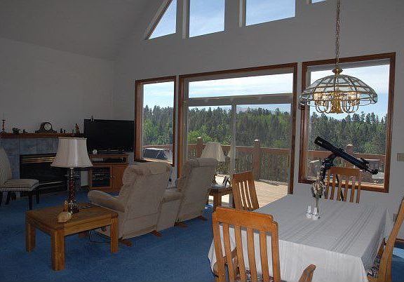 Private and secluded, this beautiful mountain charmer sits off the main road on just over 5 acres with Pikes Peak views. Enjoy daily strolls on your own, private acreage. You'll love the bright, open floor plan with soaring ceilings, cozy gas fireplace and a wall of windows which let in plenty of natural light. Walk out to the private main level deck which was just renovated in 2015 with new joists and redwood decking. The spacious kitchen boasts new granite countertops, new stainless steel sink and faucet, counter bar, large pantry, wood floors and newer appliances. The laundry area is conveniently located just off the kitchen on the main level. The private and very spacious master suite is located on the upper level and has a large 5' x 12' walk-in closet, Pikes Peak views and an attached bath with a soaking tub, free standing shower and a new toilet, sink and glass shower door. Every level of this home has a full bath. There is a walk-out from the basement bedroom to the lower level deck and the basement is wired with 220 for a hot tub. You'll find new carpet, vinyl and wood laminate flooring on the main and upper levels. Some of the other recent improvements include a new roof in 2014, a new Liberty Security Storm Door on the main level and new exterior stain in 2015. This home is in pristine condition and is move-in ready. Come home to your mountain retreat today.