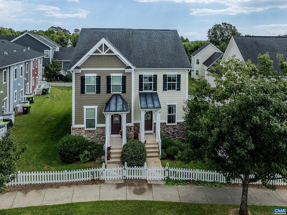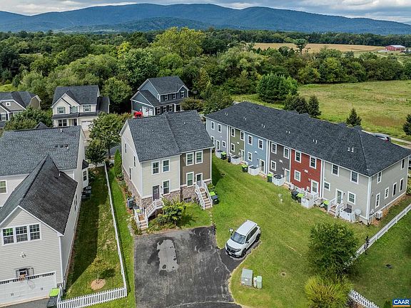 This charming duplex in Wickham Pond with a full basement is a rare find in Western Albemarle! With white picket fence and beautiful gardens and landscaping, this home looks like it's straight out of a fairytale. This light-filled home features an open main level floor plan with hardwood floors, two bedrooms on the second level plus a full basement that could be a great in-law or teen suite! The great room/dining area opens to the practical kitchen with white cabinets, island work surface and white appliances with stainless steel refrigerator. Upstairs, the primary bedroom features an ensuite bathroom with tub/shower combo, and two large closets. The second bedroom, full bathroom and stacked washer/dryer complete the second floor. The lower level boasts a large rec room, third bedroom and accessible bathroom with zero-step shower. Two private parking spots at the rear of the home too!,White Cabinets