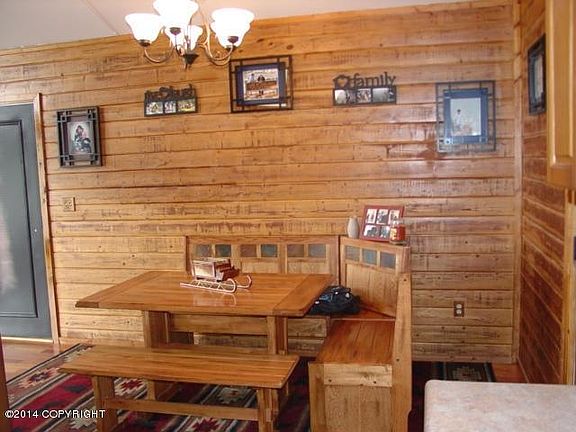 This prow-front truly has ''Alaska Charm''. Owner has remodeled/updated keeping an Alaska theme thru-out. New interior paints, light fixtures, tile accents & flooring. Stainless appliances. 5-Burner stove. Pots/Pans Rack. Genuine hardwood floors. Counters & bathroom fixtures. Stone tub/shower surround. Extensive wrap-around deck w/hot tub (small portion of deck at back door is covered). A MUST SEE