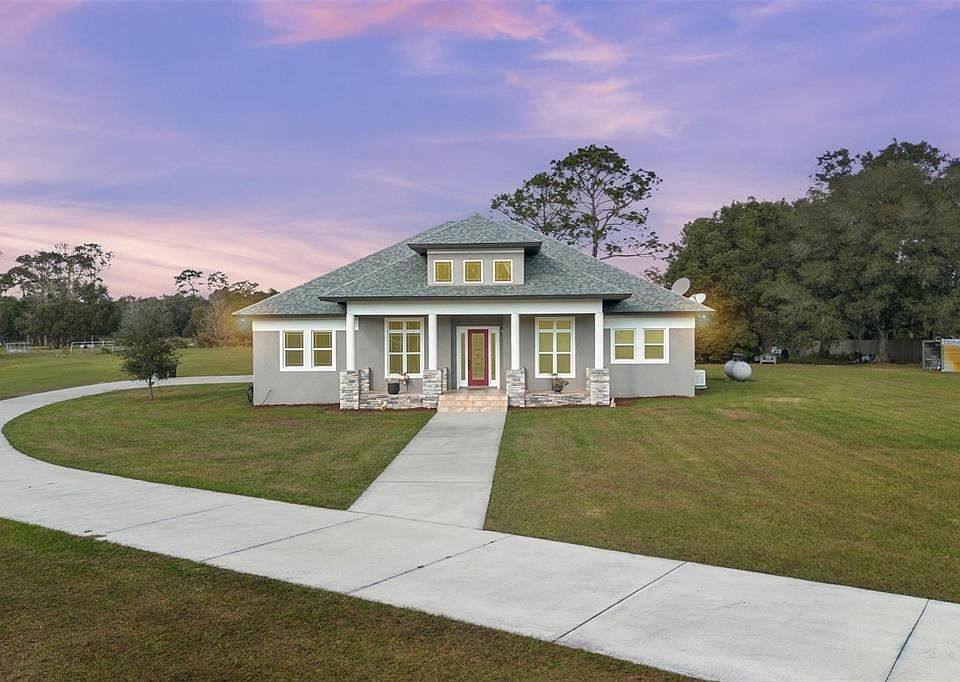 Country comfort meets modern convenience on peaceful Kicklighter Road. Set on 2.75 fully fenced acres with an electric access gate, this ranch-style retreat offers the elbow room and privacy you’ve been craving. Inside, 10’ ceilings carry throughout and a vaulted living room anchors the easy, open layout—perfect for laid-back gatherings around the electric fire place, after a day outdoors. The kitchen leans rustic-chic with a striking copper sink and matching range hood, quartz countertops, range, double oven, and plenty of workspace. The primary suite brings spa vibes with a separate soaking tub and walk-in shower. Double-pane windows help keep power bills low, while a 2023 whole-home generator provides peace of mind when storms roll through. Stretch out on the HUGE screened back patio—there’s room for dining, lounging, and all your favorite backyard hobbies. Practical touches include a laundry room with a utility sink, water softener, and a comprehensive camera/security system. If you’re after a true country retreat with thoughtful upgrades and room to roam, this Lake Helen haven nails it! This quaint community embraces golf cart and horse back riding. Call today for your private showing!