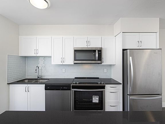 Refinished hardwood flooringStone-like ceramic tileElegant white cabinetryStainless-steel appliancesIndividual thermostatsCity viewsInternet ready