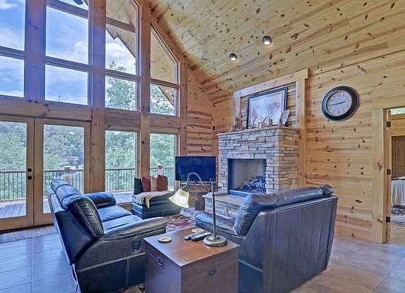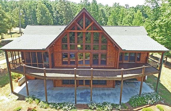 Yes, dreams do come true.....Experience true craftsmanship w/ this custom log home with a majestic view of Currahee Mountain and your very own private lake. The open floor plan demands your attention with soaring vaulted ceiling and a wall of windows to enjoy nature from indoors. The kitchen is a chefs dream with a full size fridge and a full size freezer everything you need will be on hand. 2 master suits on the main level, screened porch and a sleeping loft (bunk room) upstairs. The terrace level includes 2 br, full bath, kitchen, den and game room. The horseback adventures start at the 1700+ sqft 4 stall insulated horse barn w/restroom, tackroom and wash area. This 49 acres joins the Lake Russell Wildlife Management area 17,000 acres.