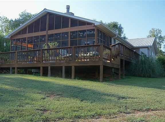 Year around water with approx. 500-600 ft. of water frontage and approx. 7 acres manicured tastefully. 3427 sq ft all on one level, with very open floor plan & cathedral ceilings, rock FP, 5BR, 3 BA, massive great room, great for entertaining overlooking the TN river on the 800 sq ft screened porch. Also a deck, 2000 sq ft basement with drive thru garages. 20x30 dock & additional dock with built in benches. Too many ammenities to mention. Must see this one!