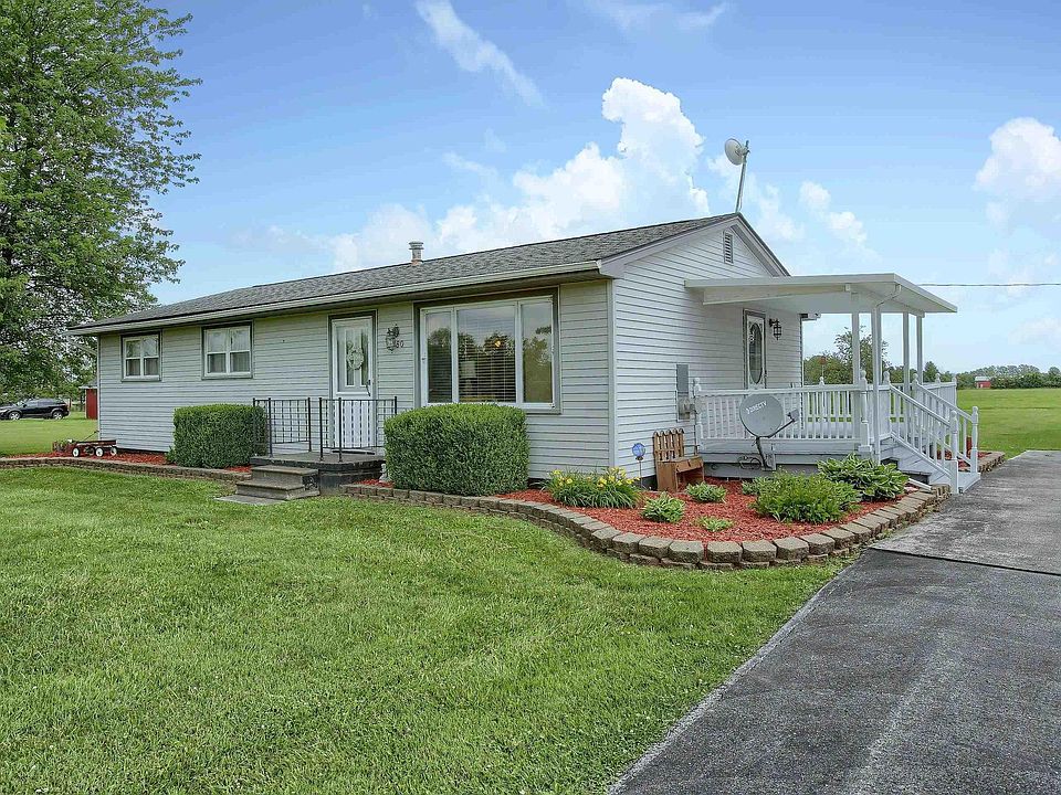 Country living awaits! Come see this very well taken care of 3 bedroom 1.5 Bath Ranch on almost 5 Acres on a paved road with natural gas and just minutes from I-69. Sit on the enclosed back porch, relax and watch the clouds roll by and the wildlife that visits. There is a 35x40 Pole Barn with workshop with overhead doors front and back. Reverse osmosis water filer under the kitchen sink, water softener. Refrigerator, Range/oven, Washer and dryer stay! Asphalt driveway!