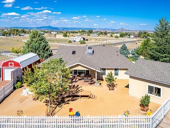 Gorgeous single level completely remodeled home on 2 acres w/views of Granite Mtn, & bordering State Land. Beautiful custom touches throughout home including crown molding & porcelain plank wood look tile. Living room boasts vaulted T&G ceilings, corner fireplace & picture window. Dining room & kitchen are an entertainers delight with lots of storage, counterspace & stainless appliances. Owners Suite has 2 closets, dual vanities, walk-in shower & fireplace. Split floor plan- 2nd & 3rd bedrooms and full guest bath. 3rd bedroom has bonus rm w/outside access (office)Attached 2 car garage is oversized 22' deep w/18' wide door, Detached garage 24'x24' , Storage bldg 12x30' & a 11'x30' carport. RV hook ups & ability to dump onsite. Seller must have end of January/Mid Feb 2024 (TBD) COE.
